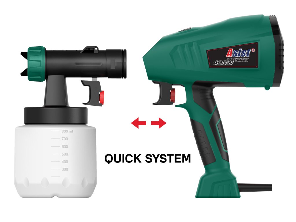 - Výkonný motor 400 W pro stabilní rozprašování a hladký povrch