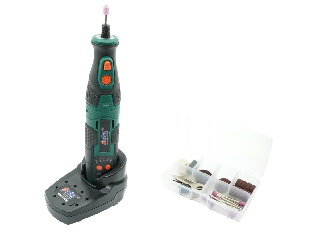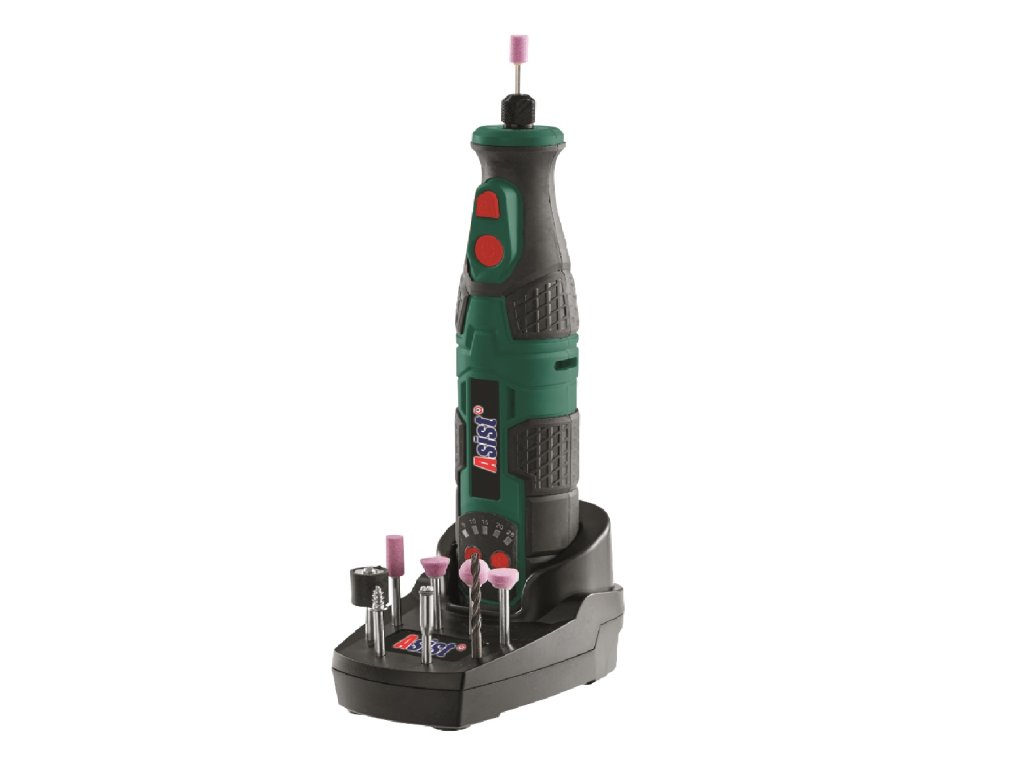 Skvěle propracovaná akumulátorová přímá mini bruska značky ASIST představuje univerzální nástroj pro domácí kutily, drobné řemeslníky i na hobby použití. Jedná se o mini brusku s napětím 7,2V a ** regulací otáček**. Otáčky je možné regulovat v rozmezí 5000 – 25000 otáček za minutu. Je vhodná pro opracování jak měkkých, tak i tvrdých materiálů. Skvěle se drží a snadno i rychle v ní vyměníte pracovní nástavce. Navíc k ní obdržíte 40 kusů příslušenství.