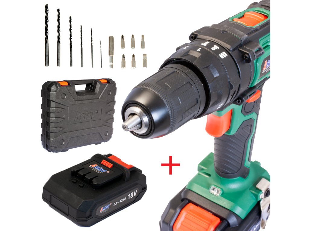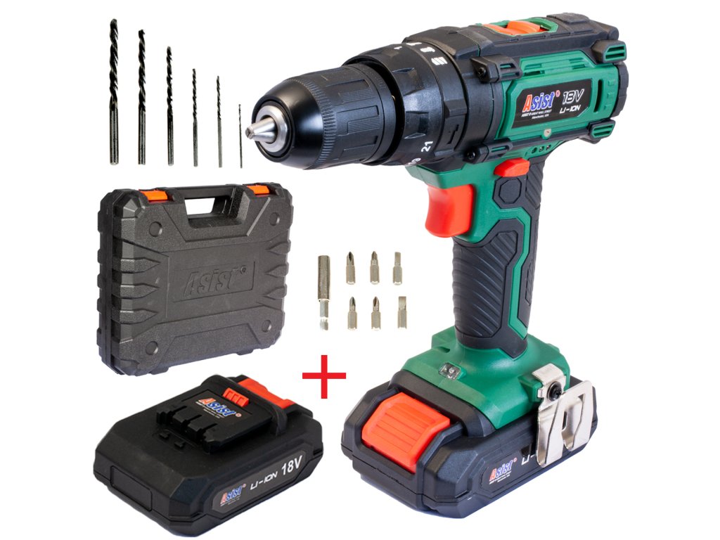 Aku vrtačka 18V / 2x 1,5Ah příklep ASIST AE2V18DN-152-BMC