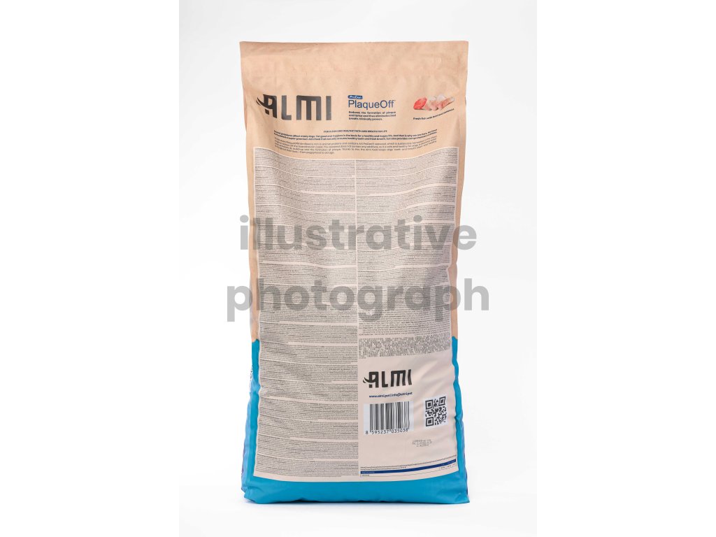Granule ALMI Maxi Adult nabízí komplexní výživu díky vyváženému složení s 71 % živočišného proteinu. Obsahují čerstvé rybí maso ze sledě a hovězí maso, doplněné o hrách, jablka a řepnou vlákninu. Neobsahují žádná přidaná umělá barviva a jsou přirozeně konzervovány rozmarýnovým extraktem. Rýže pak zajišťuje dobrou stravitelnost krmiva. Granule ALMI jsou obohacené o PlaqueOff, u kterého je klinicky prokázáno, že snižuje zubní plak, zubní kámen a zlepšuje špatný dech. Klíčové vlastnosti