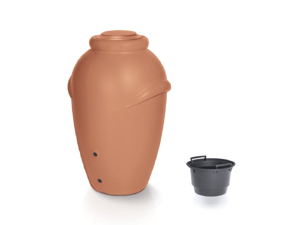 Tvar a konstrukce nádrže je inspirována modelem starověké amfory, vyrobené z kvalitního plastu (imitace kamene), který je odolný povětrnostním vlivům. Je vybavená dvěma otvory pro výpusť vody (kohoutek, hadice-nejsou součást balení). Vrchní víko může sloužit, jako podmiska pod květináč.
