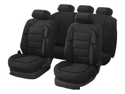 Univerzální autopotahy, sada pro 5 sedadel, střih LIMA. Prošívaný polyester. Pro dělitelná zadní sedadla v poměru 1/3. Včetně opěrek hlavy, homologováno pro boční airbagy....
