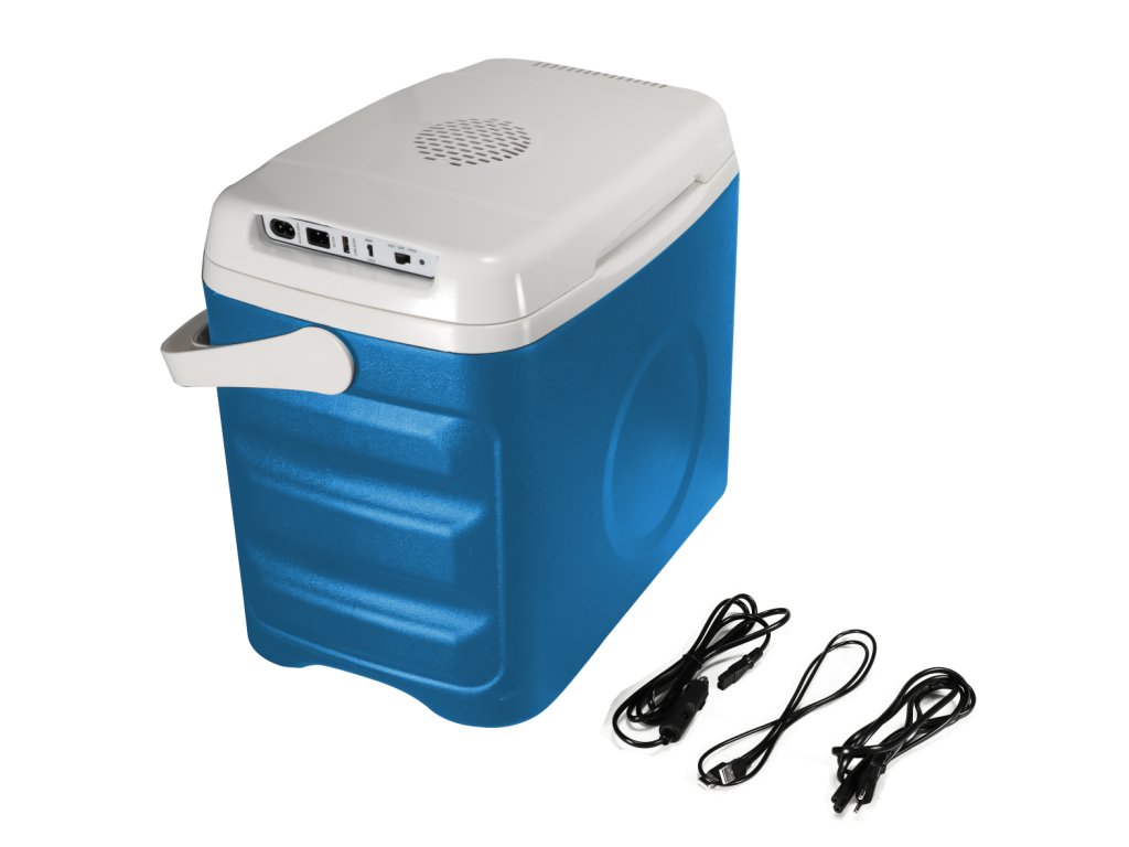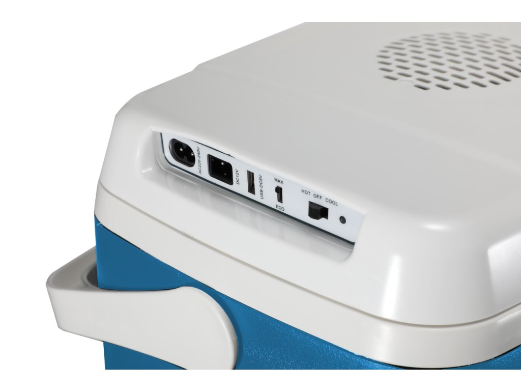 Chladí až 20°C pod okolní teplotu a udržuje potraviny a nápoje v chladu Ohřívá až na +55°C Zelená a červená kontrolka signalizující chlazení nebo ohřev Kapacita 29l Vysoce kvalitní izolace a utěsnění víka Pracuje při napájení 5V, 12 V nebo 220 – 240 V USB port umožňuje napájení z powerbanky a činí tak zařízení skutečně mobilní. (Pro správné fungování je nutno zapnout režim ECO a doporučujeme použít powerbanku, která má minimálně 10 000 mAh a výstup 2,1A/5V) Zástrčka připojitelná do jakékoliv 12 V zásuvky cigaretového zapalovače v automobilu, lodi či obytném přívěsu V režimu ECO dosahuje energetické třídy F Integrovaný adaptér pro připojení do zásuvky na 220 – 240 V Tichý bezkontaktní motorek s dlouhou životností Nízká hlučnost < 26dB(A) Maximální příkon 65 W Vnitřní rozměry (ŠxDxH) 37,2 x 23,4 x 31 cm