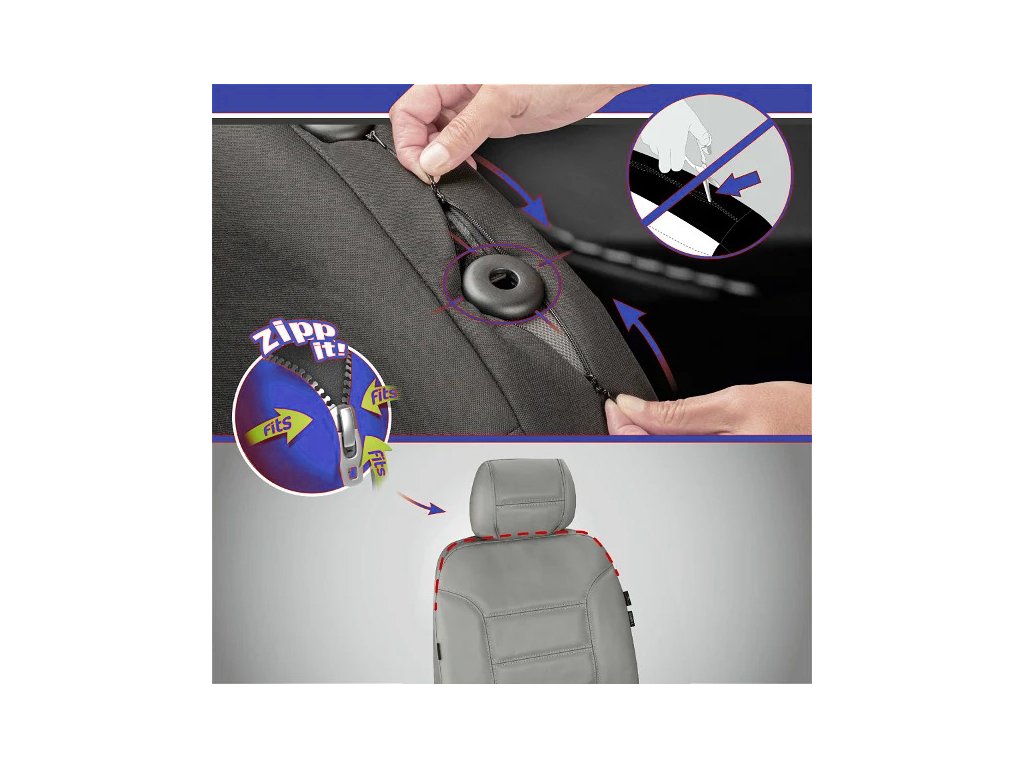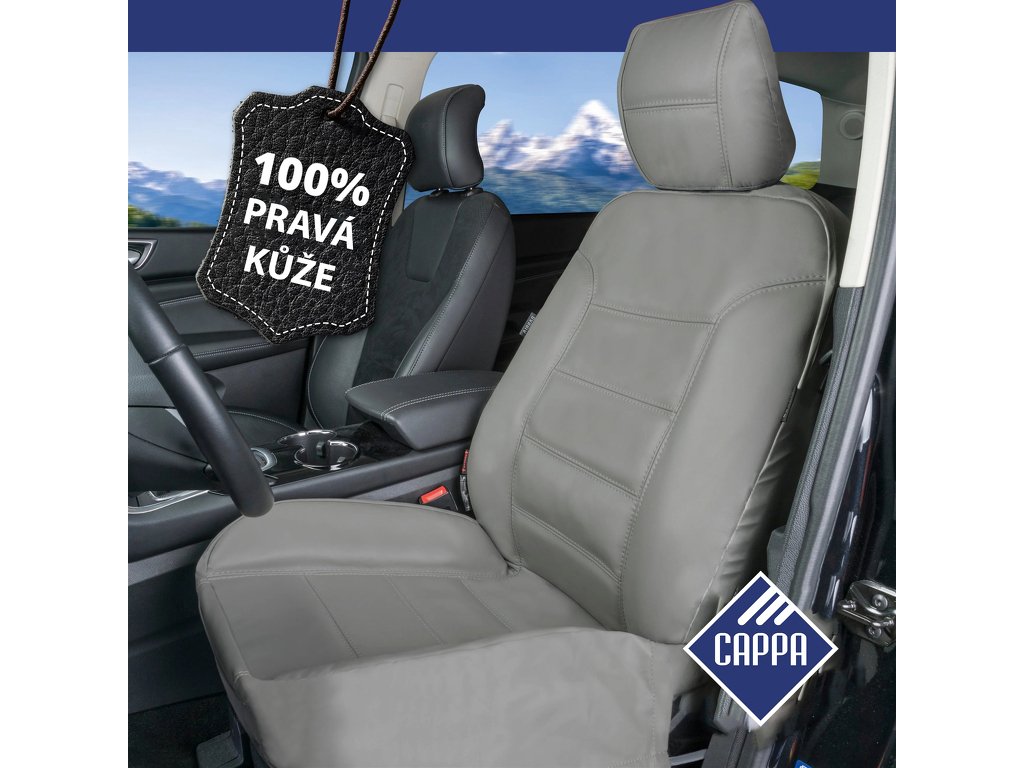 Kožený Perfect-fit autopotah na přední sedadlo, 1 ks, s opěrkou hlavy. Homologován pro boční airbagy, snadná a rychlá instalace, prémiový vzhled, zabraňuje opotřebení a znečištění sedadel.
