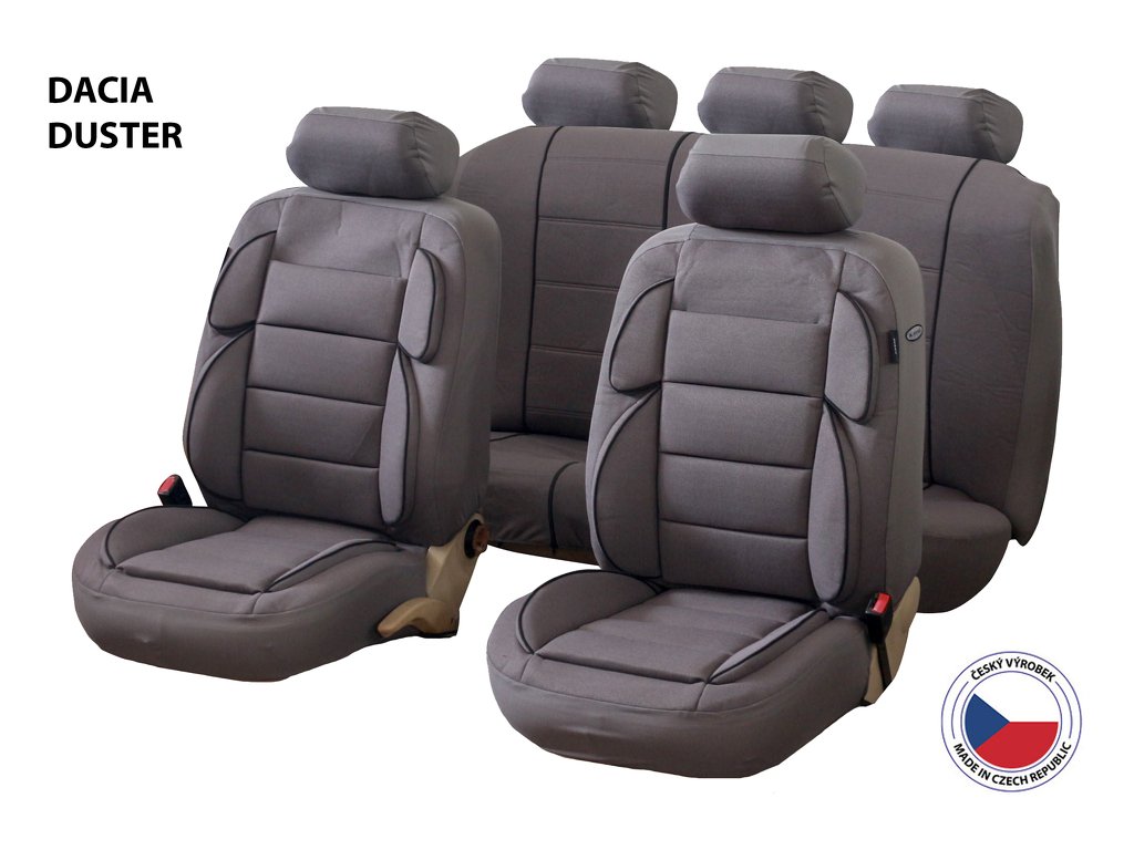 - Perfektní usazení: střih přizpůsobený sedadlům Dacia Duster včetně otvorů pro opěrky hlavy a bezpečnostní pásy.