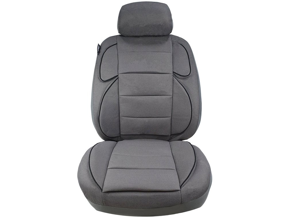 Obsah balení: kompletní sada pro přední i zadní sedadla včetně potahů opěrek hlavy a montážních háčků.