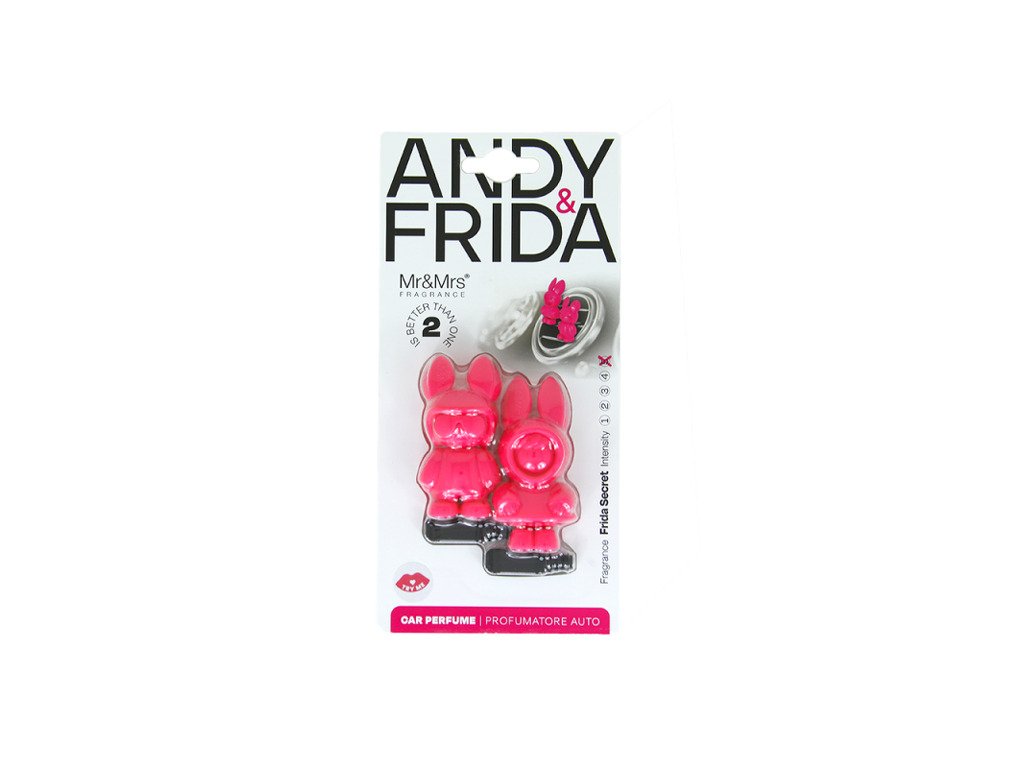 Andy & Frida jsou osvěžovače vzduchu do auta navrženy umělkyní Rumiko Takeda inspirovanou Metaverse a krypto uměním. Je vyroben z EVA - termoplastického polymeru (měkké pryže) a při kontaktu se vzduchem vypouštěným ventilačním otvorem automobilu uvolňuje příjemnou vůni. Horká novinka jara roku 2024! Velice atraktivní design ve tvaru panáčků 2 kusy vůní v balení Vyrobeno z termoplastického polymeru (měkké pryže) Sladká vůně dámského parfému Vyhlášená italská značka Prestižní certifikát IFRA Zdravotní nezávadnost Uvolňuje vůni až 45 dní Rozměry: 5,9 x 6,3 cm Upevnění do výdechu klimatizace.