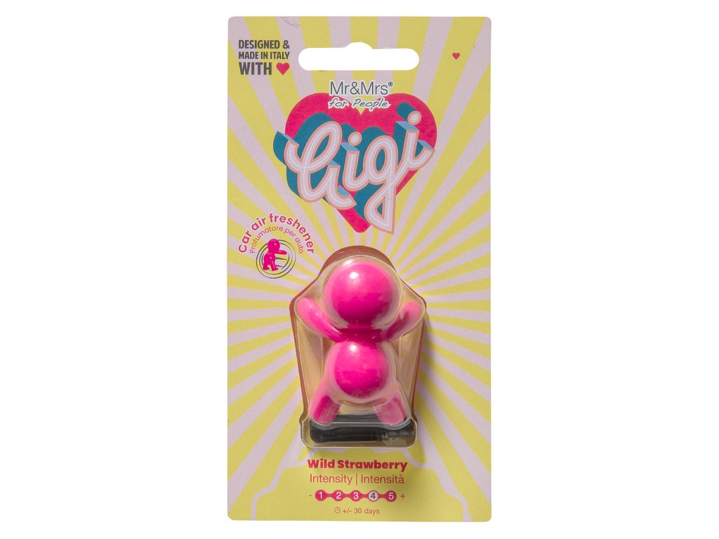Gigi je osvěžovač vzduchu do auta, který je výsledkem spolupráce mezi Mr&Mrs Fragrance a slavným návrhářem Stefano Giovannoi (Qeeboo). Je k dispozici v šesti barvách a šesti vůních, do kterých se zamilujete. Velice atraktivní design ve tvaru panáčka Vyrobeno z termoplastického polymeru (měkké pryže) Tóny jahody, broskve, divokých květin, zimolezu, vanilky a bílého pižma. Vyhlášený italský design Prestižní certifikát IFRA Zdravotní nezávadnost Uvolňuje vůni 30 dní Rozměry: 3,5 x 5 cm Upevnění do výdechu klimatizace.
