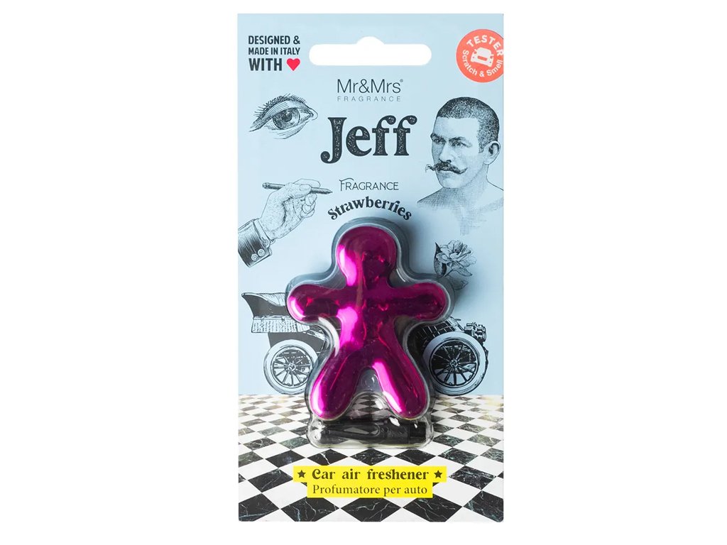 Jeff Chrome je osvěžovač vzduchu do auta, který je výsledkem kombinace elegantního stylu a vůně. Je k dispozici v šesti barvách a šesti vůních, do kterých se zamilujete. Velice atraktivní design ve tvaru chromovaného panáčka Tóny hlohu, divoké konvalinky, lesních jahod, malin, badyánu, cedrového dřeva, páleného sladu, florentského kosatce, vanilkových bobulí Vyhlášený italský design Prestižní certifikát IFRA Zdravotní nezávadnost Uvolňuje vůni 30 dní Rozměry: 5,5 x 4,5 cm Upevnění do výdechu klimatizace.