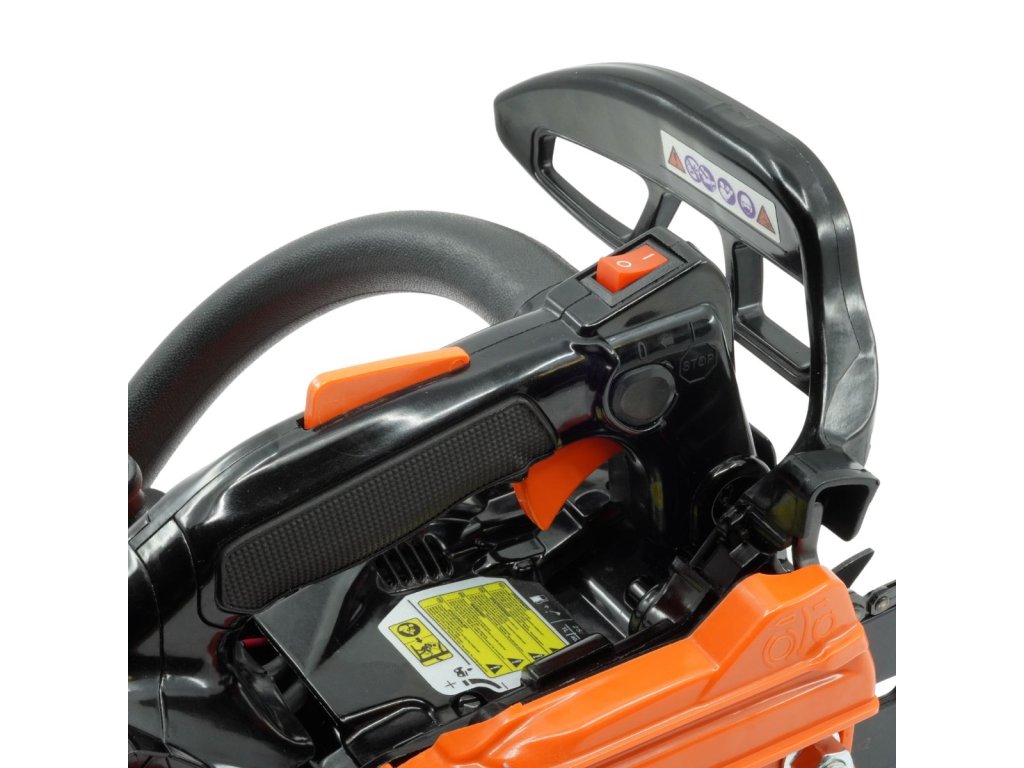 Bezpečnostní pokyny: Benzínovou motorovou řetězovou pilu smí používat pouze osoby starší 18 let, které jsou k tomu zdravotně způsobilé. Obsluha musí splňovat podmínky stanovené vyhláškou 42/1985 Sb. a souvisejícími předpisy. Nikdy nepoužívejte motorovou pilu, jste-li osamoceni a bez možnosti přivolat pomoc ! Další bezpečnostní pokyny prostudujte pečlivě v přiloženém manuálu.