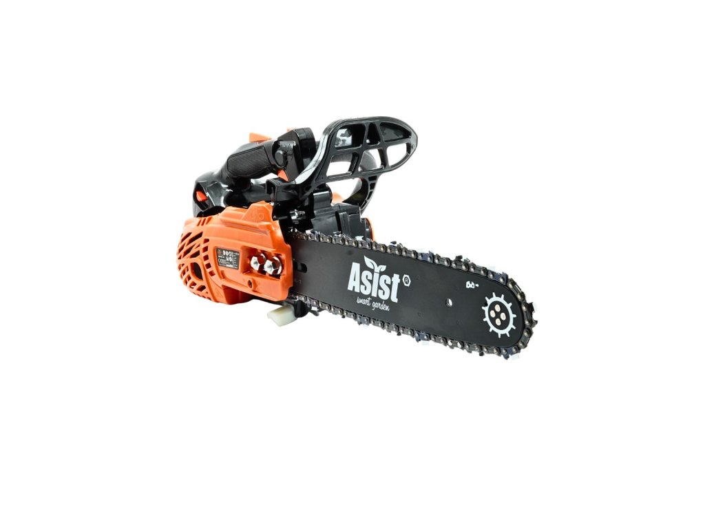 Výhodou této benzínové řetězové pily Asist Smart Garden je její lehká váha. Váží pouze 2,5kg (s lištou a řetězem 30cm je celková váha 3,2kg). Navíc obsahuje množství bezpečnostních prvků pro zajištění maximální bezpečnosti osoby, jež s pilou pracuje.
