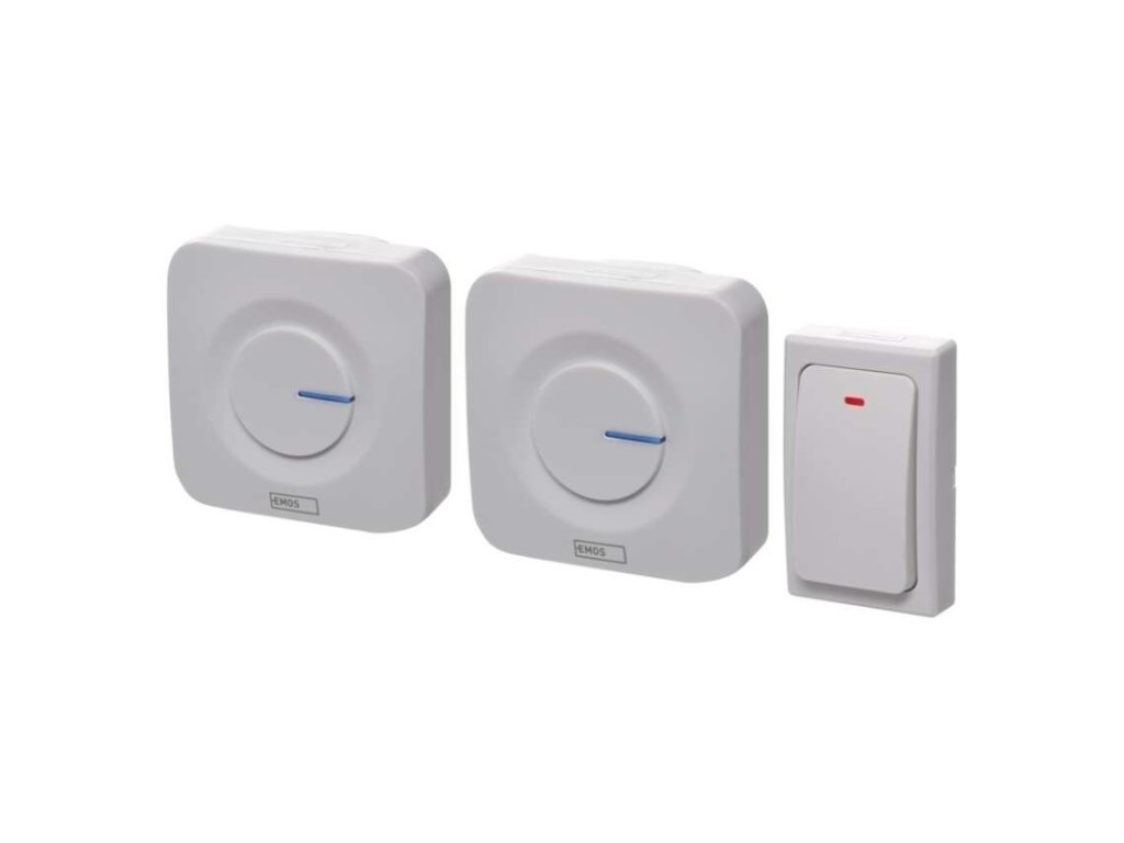 ** Elegantní design ** Moderní domovní zvonek EMOS v elegantní bílé barvě má zaoblené tvary a na svět svítí dvěma LED diodami, které signalizují jeho bezchybnou funkci. Dioda na tlačítku má barvu červenou, dioda na zvonku pak modrou. Mezi sebou pak obě části soupravy komunikují prostřednictvím rádiových vln o frekvenci 433,92 MHz.