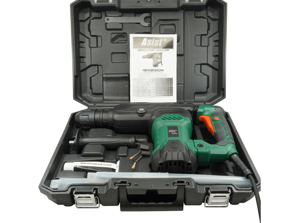 1ks rukojeť 1ks špičatý sekáč 18x320mm 1ks plochý sekáč 18x320mm 1 pár uhlíků 1ks mazivo 1ks klíč