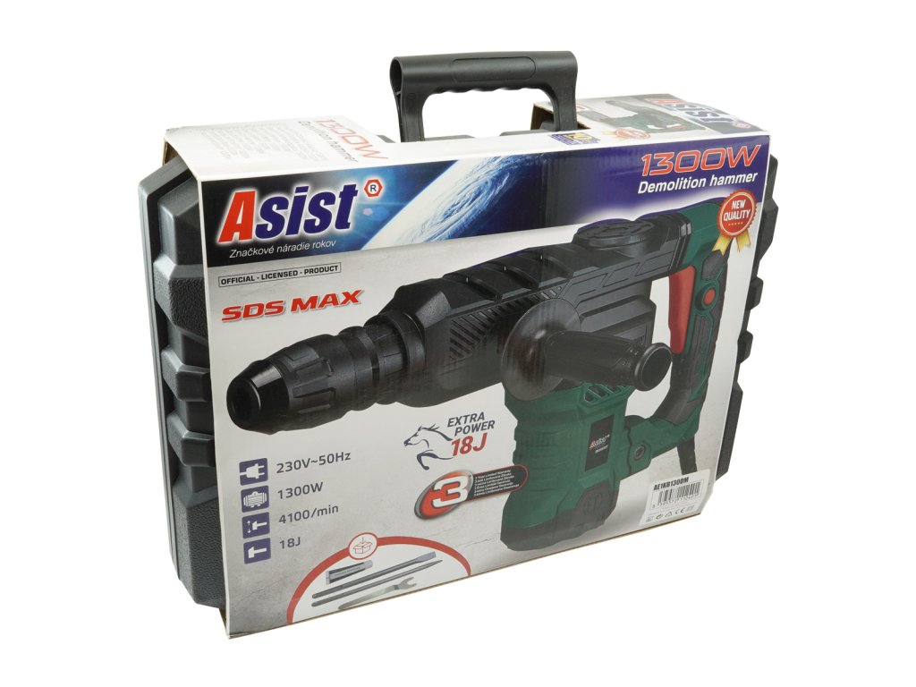 Výkonné pneumatické bourací kladivo s příkonem 1300W a sílou úderu fantastických 18J, což jej řadí k nejvýkonnějším kladivům v dané třídě. Pro sekání do betonu, cihly, kamene či jiného stavebního materiálu. Kladivo je kompaktní konstrukce se standardní vahou 5,1 kg.