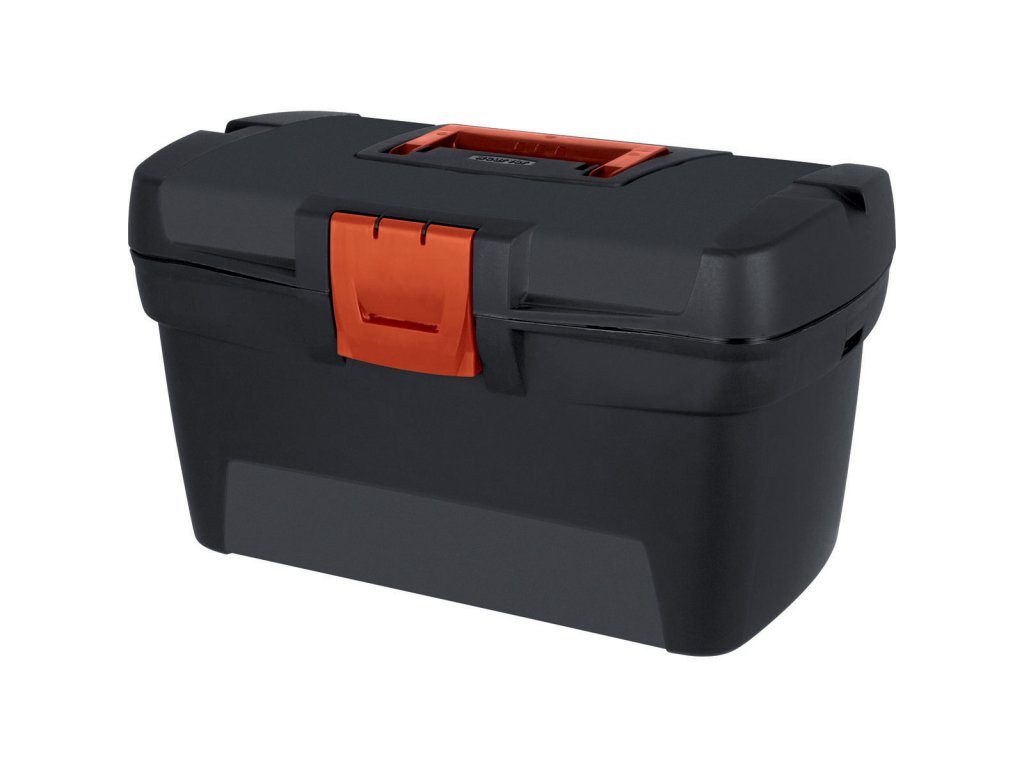 Skříňka na nářadí je základním prvkem vybavení nejen profesionálů, ale také začínajících kutilů. Praktická a objemná skříňka umožní uložit veškeré drobné předměty, tento úkol usnadňuje především praktický podnos, který se nachází uvnitř. Box Herobox má držadla, na které lze připevnit popruh usnadňující přenášení. Silná konstrukce a pevné zavírání zajišťují nářadí bezpečí. Box v černé barvě s červenými doplňky.