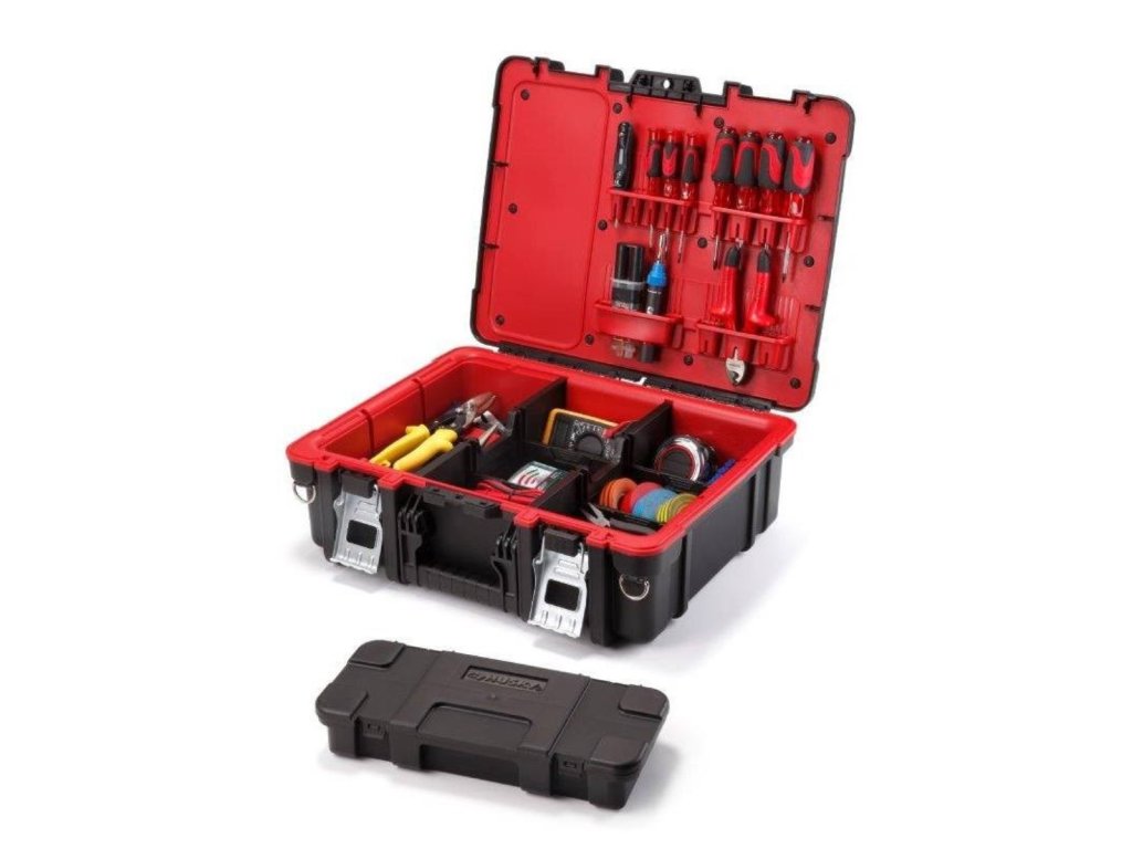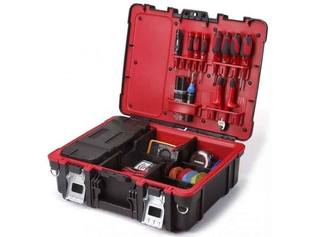 Praktická skříňka s velkým objemem. Její vnitřek usnadňuje skladování nářadí různých velikostí, Organizér ve skříňce umožňuje snadnější přístup k nejčastěji používanému nářadí. Výrobek byl navíc vybaven vyjímatelným Organizérem s přepážkami. Díky pohodlnému držadlu lze skříňku bez problému přenášet. Produkt byl vyroben z vysoce kvalitních materiálů, což zajišťuje jeho stálost a odolnost.