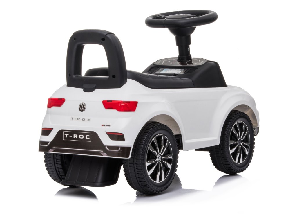 drážedlo Volkswagen T-R C fficial licensed product Úložný prostor pod sedátkem Zvuky a melodie na volantu Velikost 67 x 28 x 43 cm, sedátko je ve výšce 26 cm Nosnost 25 kg Vhodné pro děti od 2 let Baterie: 2x AA baterie nejsou součástí dodávky