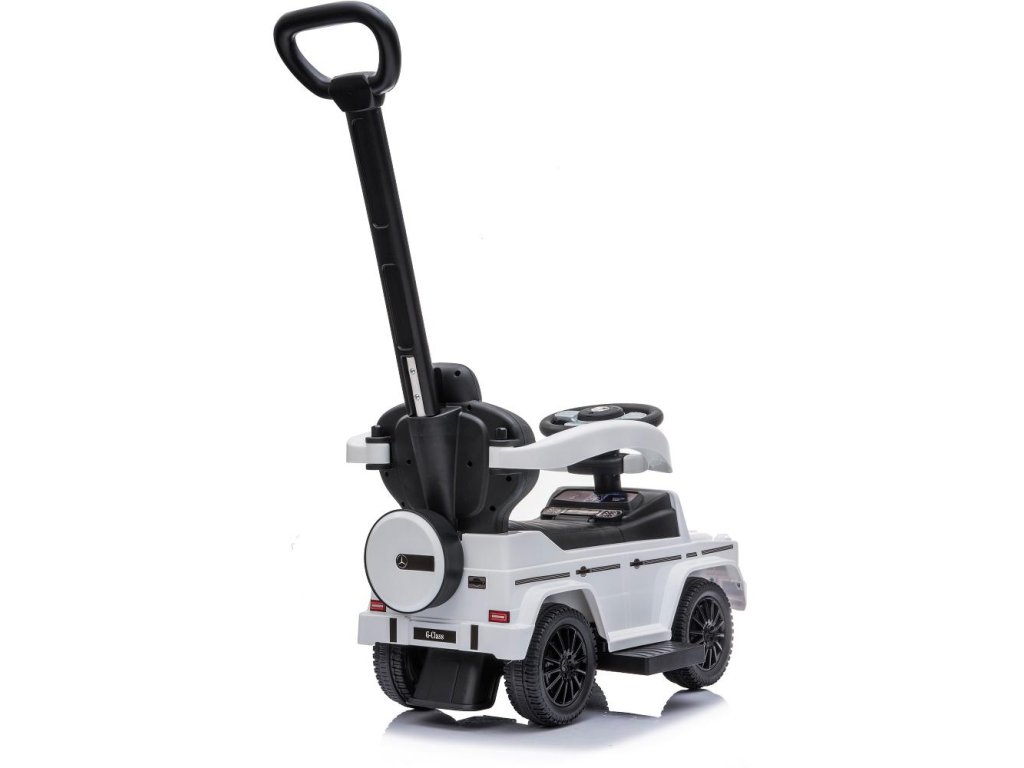 drážedlo 3v1 BUDDY T YS BPC 5280 Mercedes G350d fficial licensed product Úložný prostor pod sedátkem Zvuky a melodie na volantu Držák na pití Nosnost 25 kg Vhodné pro děti od 2 let Barva: Bílá Baterie: 2x AA baterie Nejsou součástí dodávky Rozměry: 82 x 43 x 95 cm Sedátko je ve výšce 26 cm