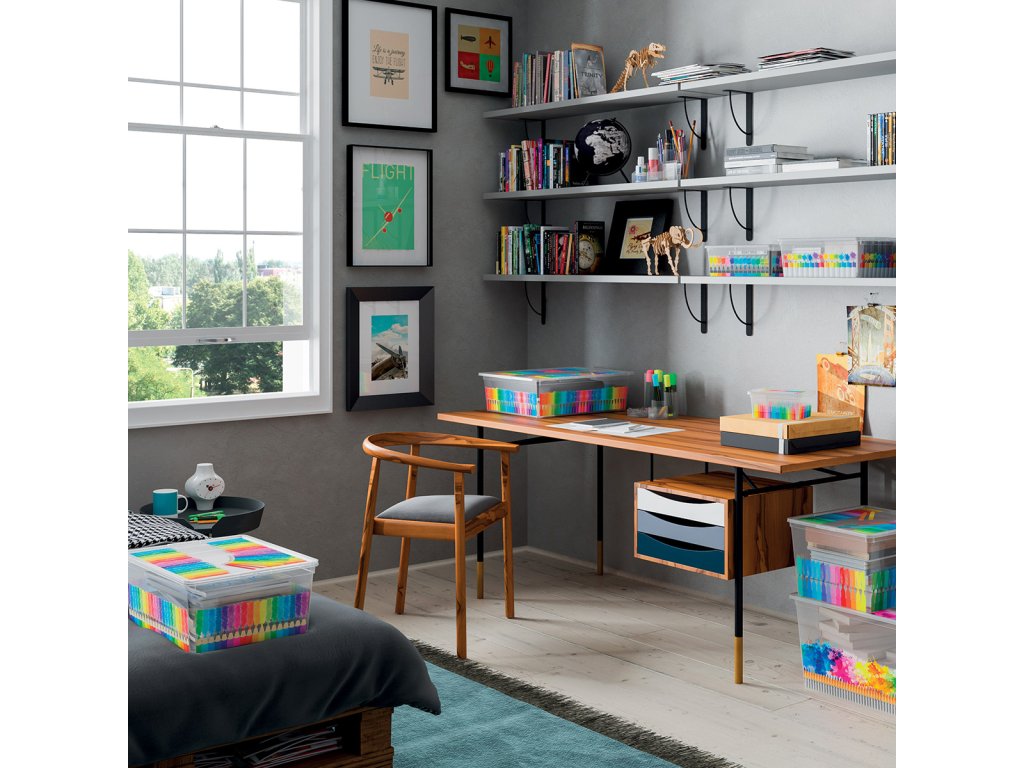 B Colours Arty provedení si oblíbí každý. V případě potřeby je možné více boxů stohovat na sebe či poskládat do větších - dochází tak k úspoře místa. Kolečka, kterými je opatřen, zajistí snadné přenášení i plného boxu. Je dodáván spolu s praktickým víkem, které se na box jednoduše zacvakne. Rozměry C Boxu Style Bubbles L jsou 55 x 16,5 x 38,5 cm.