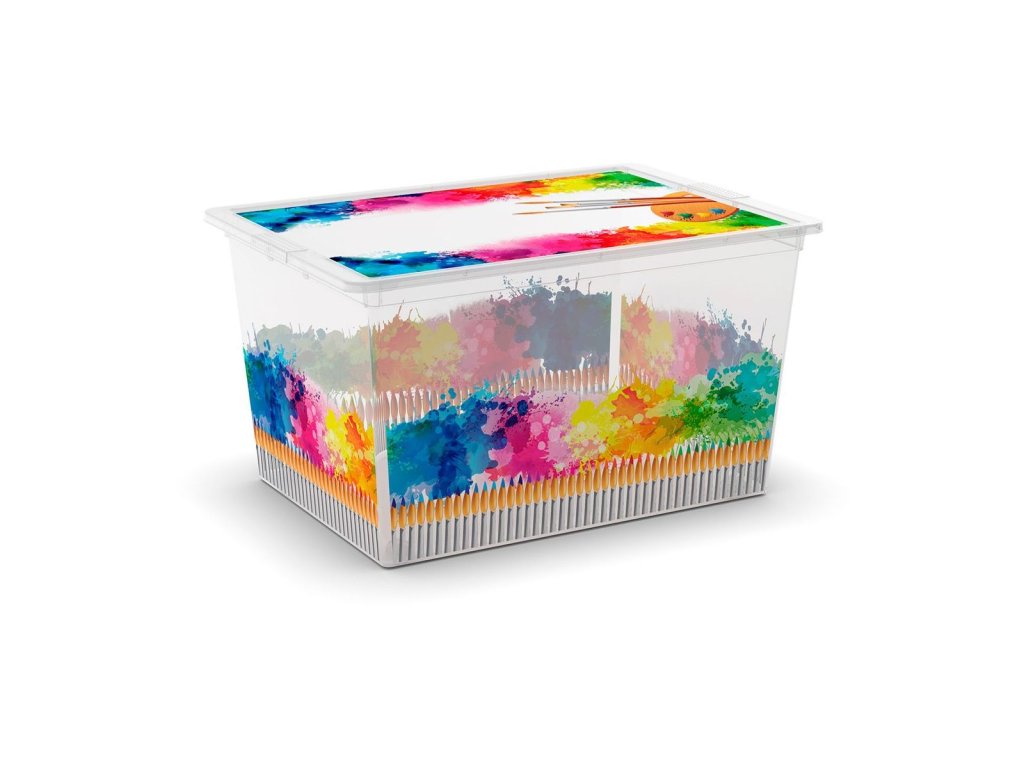 ** Colours Arty** provedení si oblíbí každý. V případě potřeby je možné více boxů stohovat na sebe a šetřit tak místo. Kolečka, kterými je opatřen, zajistí snadné přenášení i plného boxu. Je dodáván spolu s praktickým víkem, které se na box jednoduše zacvakne. Rozměry C Boxu Colours Arty XL jsou 55 x 30,5 x 38,5 cm.