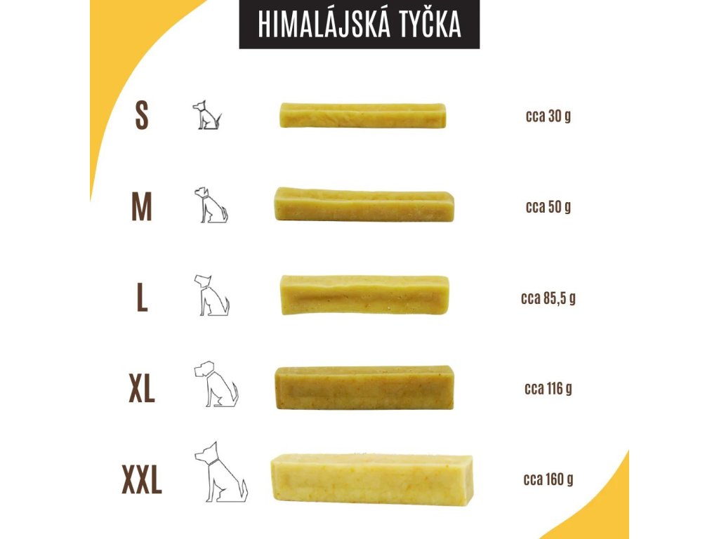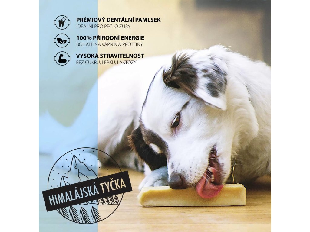 Nemusíte zdolávat Everest, abyste pejskovi mohli dopřát to nejlepší. Himalájská tyčka od Dogsie je nový originální pamlsek, inspirovaný tradiční himalájskou recepturou.Himalájská tyčka je odolná žvýkací dobrota z kvalitního belgického mléka, sušeného po dobu 3 měsíců. Výsledkem je extra tvrdý dentální pamlsek, který si Váš chlupáč zamiluje! Obsahuje protein a vápník. Zároveň je bezlepková a obsahuje minimum laktózy a je certifikovaný k lidské spotřebě.Tyčka je balena ve speciálně vytvořené krabičce z recyklátu. Žádné plasty, jen čistá radost...K dispozici v dalších velikostech. Klíčové vlastnosti