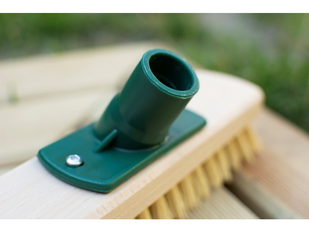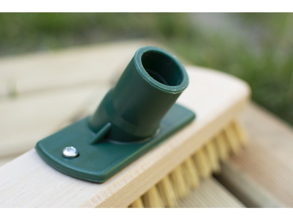 Dřevěný kartáč na drhnutí je nekompromisní pomocník na odolnou špínu. Díky velmi tvrdým vláknům a robustní dřevěné základně rychle a účinně vyčistí silně znečištěné plochy v interiéru i exteriéru – od garáží a skladů až po chodníky a dlažbu. Pevný plastový závit zajišťuje spolehlivé uchycení a kompatibilitu s dřevěnou i plastovou násadou.