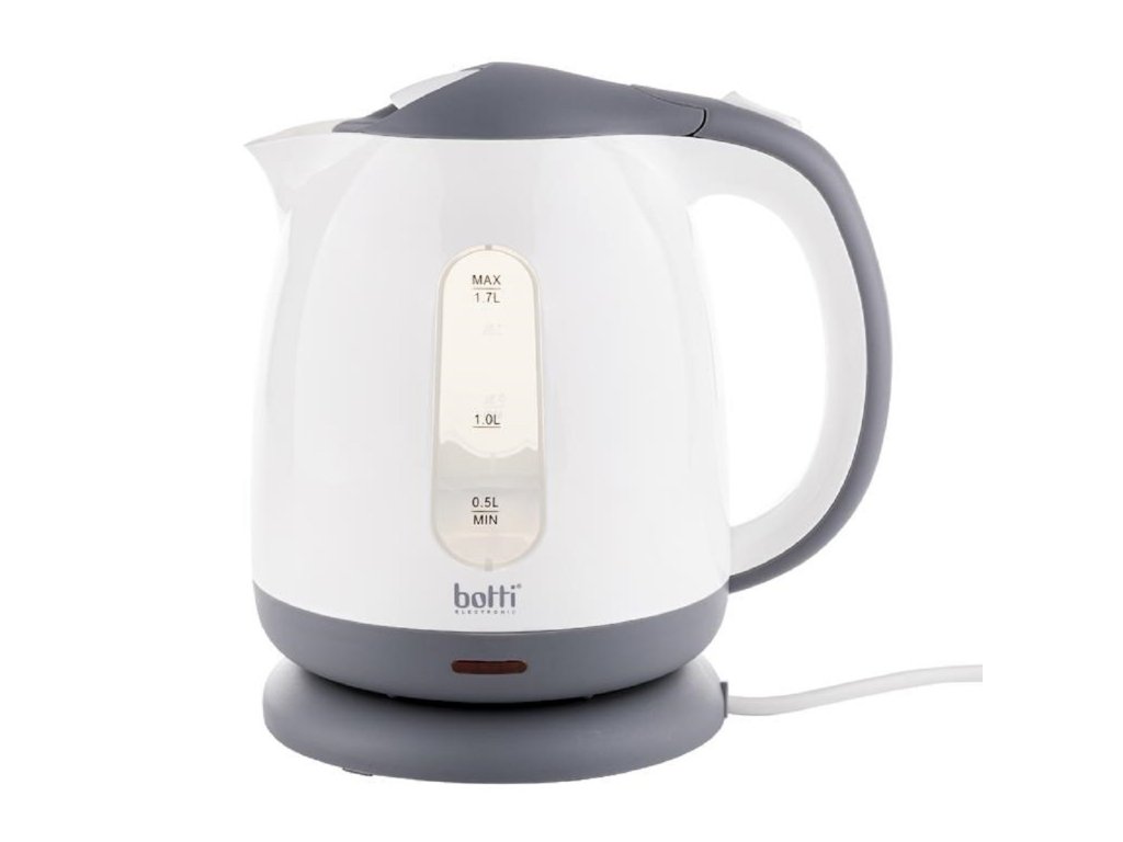 Výkon: 2200 W. Barva: bílá v kombinaci se šedou Kapacita: 1,7 l Automatické vypnutí po vroucí vodě Plochý topný článek, odolný vůči nečistotám, poškrábání a vysokým teplotám Zaklapávací víko Ochrana proti přehřátí 360 ° otočná základna Oboustranný indikátor hladiny vody Kalový filtr Kontrolka zapnutí Výška (cm): 20.5 Šířka (cm): 20,5 Délka (cm): 16,5