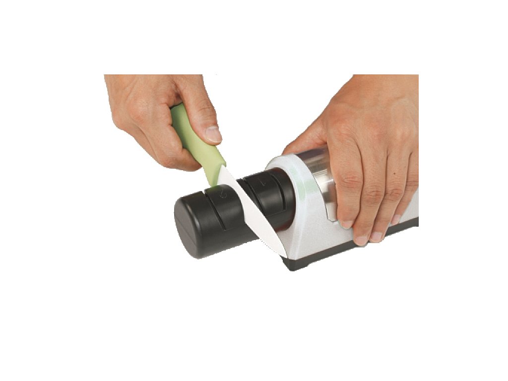 Elektrický diamantový brousek je určený k broušení ocelových i keramických nožů 4 diamantové brusné kotouče zaručují efektivní a kvalitní broušení po dlouhou dobu Správný úhel a rovnoměrný tlak vytvarují perfektní ostří Kryt z nerezové oceli podtrhuje nadčasový design a snadno se čistí