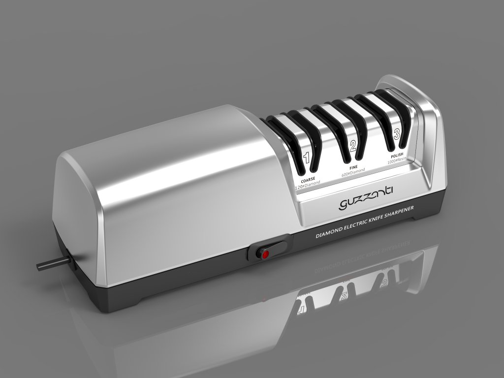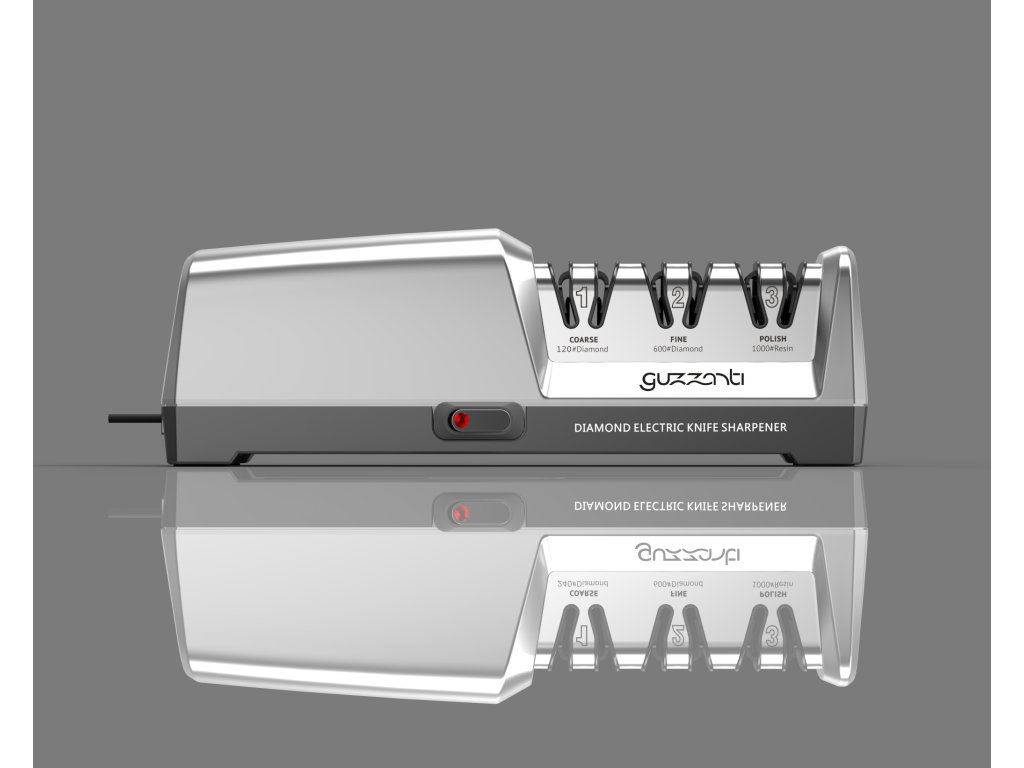 3 stupňový brousek umožňující hrubé i jemné broušení a leštění. Max. příkon : 18 W Správný úhel a rovnoměrný tlak vytvarují perfektní ostří. Brusná hlava je vyrobena ze speciálního materiálu, který chrání nůž po stranách před poškrábáním při broušení. Obsahuje zásobník na nečistoty vzniklé broušením a snadno se tak čistí. Úhel broušení nože je 15°.