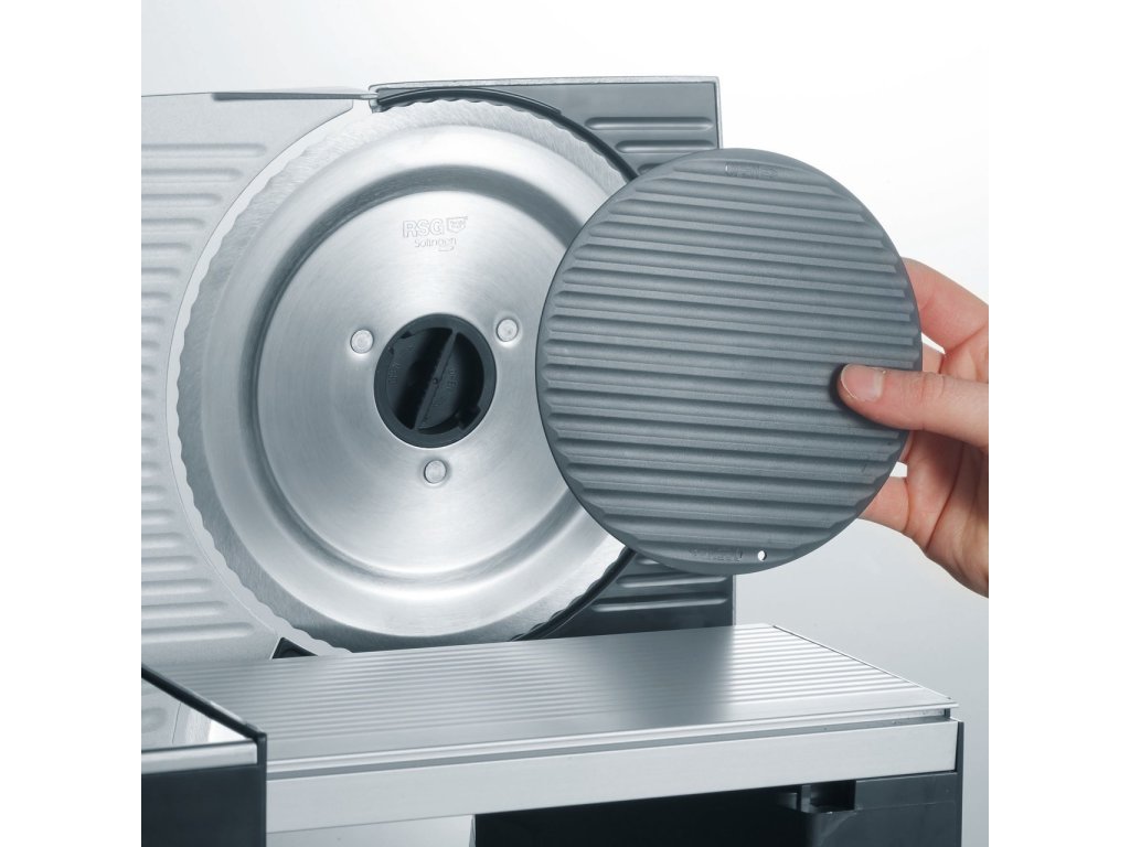 - Zoubkovaný ocelový kotouč 170 mm – čisté řezy pečiva, uzenin, sýrů i zeleniny bez mačkání.