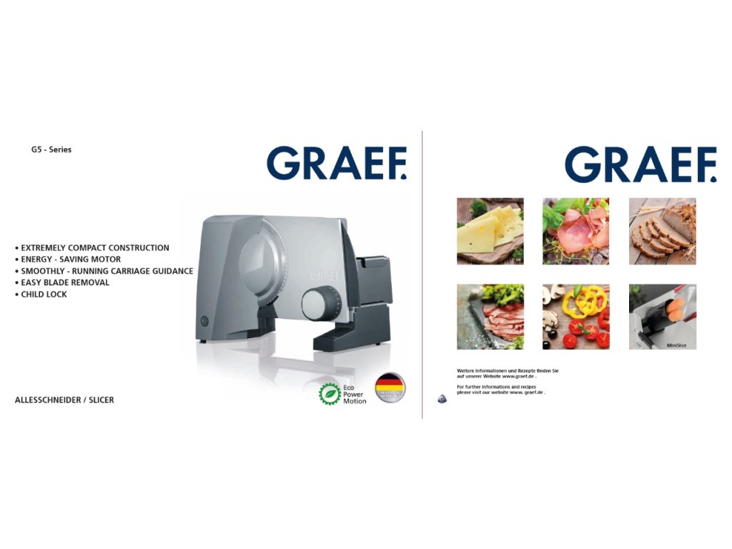 Vsaďte na kombinaci výkonu, bezpečnosti a kompaktnosti – Graef G-Line G 50 promění krájení v příjemnou a rychlou rutinu.