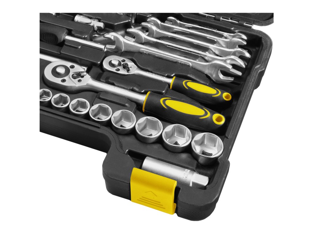 Ideální pro kutily i náročnější uživatele, kteří chtějí mít jistotu, že vždy sáhnou po správném nástroji. Díky promyšlené kombinaci nástrčných hlavic, bitů, šroubovákových nástavců, imbus klíčů, prodloužení a dalšího příslušenství pokryjete široké spektrum prací bez zbytečných kompromisů.