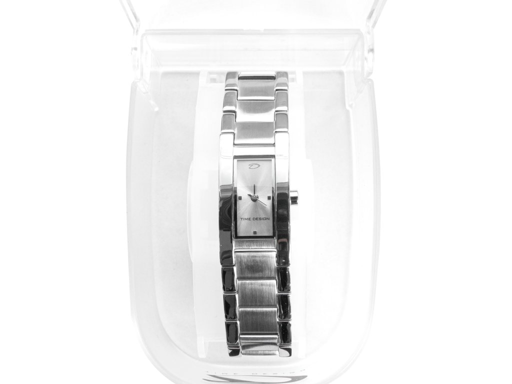 Luxusní dámské hodinky Time Design s vysoce přesným Quartz strojkem. Vyrobené z nerezové oceli vodě-odolné. Ciferník s funkcemi hodiny/minuty. Tyto elegantní hodinky jsou s náramkem ve stříbrném provedení. Balené v dárkové krabičce.