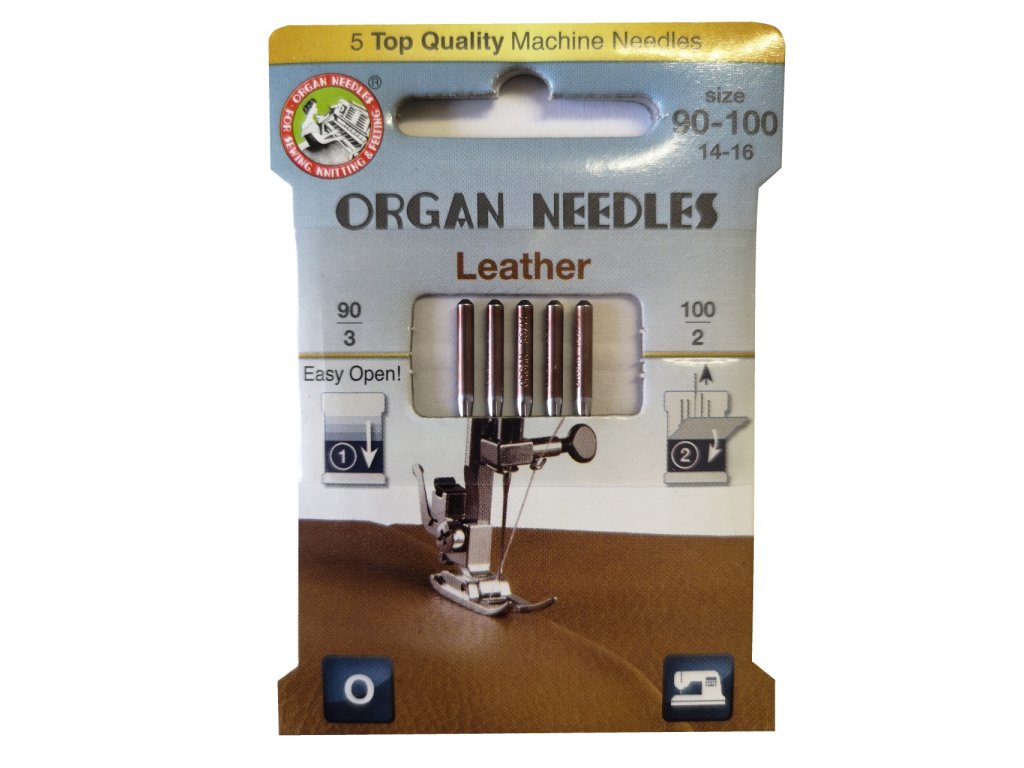 Jehly na kůži LEATHER – profesionální volba pro šití kůže a imitace kůže na domácím stroji. Speciální řezný hrot proniká materiálem hladce, bez trhání a s dokonale čistým stehem. Plochý dřík zajišťuje jisté usazení a stabilitu – pro krásné, pevné švy i v náročných projektech.