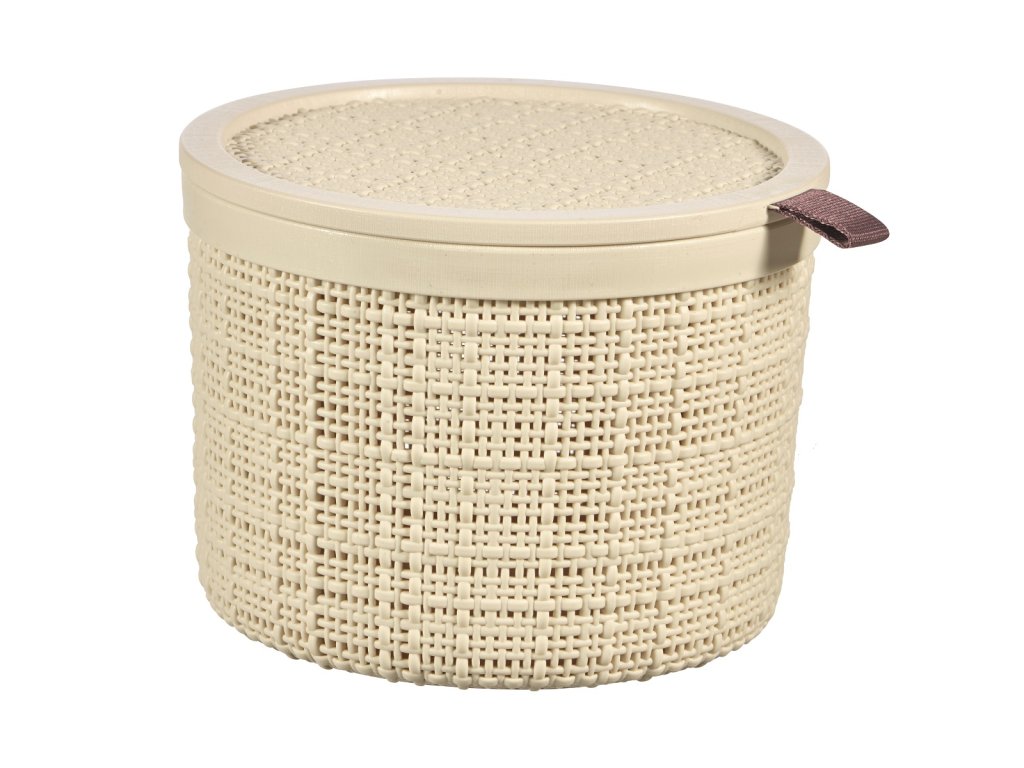ukládací koš kulatý s víkem, dekor juta, barva krémová, rozměr 13x17x17cm
