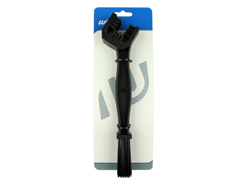 Kartáč na čištění řetězů WISTA je vhodný na čistění řetězů vašeho kola nebo motocyklu. Kartáč je svým kvalitním zpracováním vhodný pro všechny běžné rozměry řetězů. Kratší štětiny dokážou dokonale vytáhnout všechny nečistoty i ze špatně dostupných míst včetně mezičlánků řetězu. Na opačném konci kartáče lze využít delší štětiny. Technický popis: Materiál: Plast, nylon vhodný pro běžné rozměry řetezů dva druhy velikostí štětin kvalitní plastový materiál vhodné na kolo i motocykl