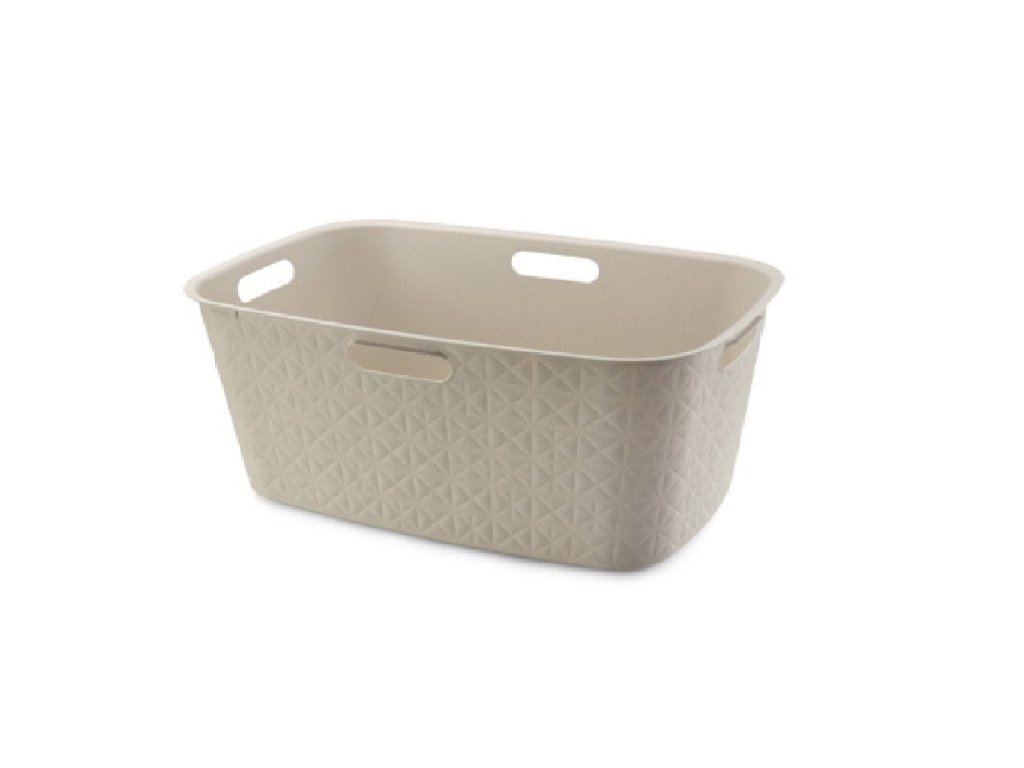 Koš na čisté prádlo LAUNDRY HAMPER o objemu 45L, inspirovaný technikou tkaní a prošívání, stylový a praktický zároveň, vyroben z 70% recyklovaného plastu, pohodlná madla pro snadnou manipulaci. Rozměry: 59,4 x 39,7 x 27,4 cm (š x d x v).