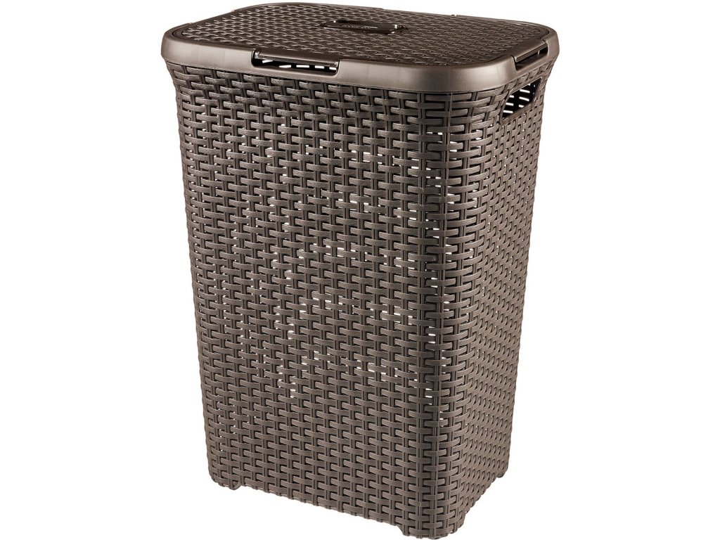 Plastový koš na špinavé prádlo o objemu 60L. Moderní design kolekce STYLE (imitace ratanu). Koš je opatřen víkem. Otvory ve výpletu zajišťují cirkulaci vzduchu. Postranní úchyty pro snadnou manipulaci.