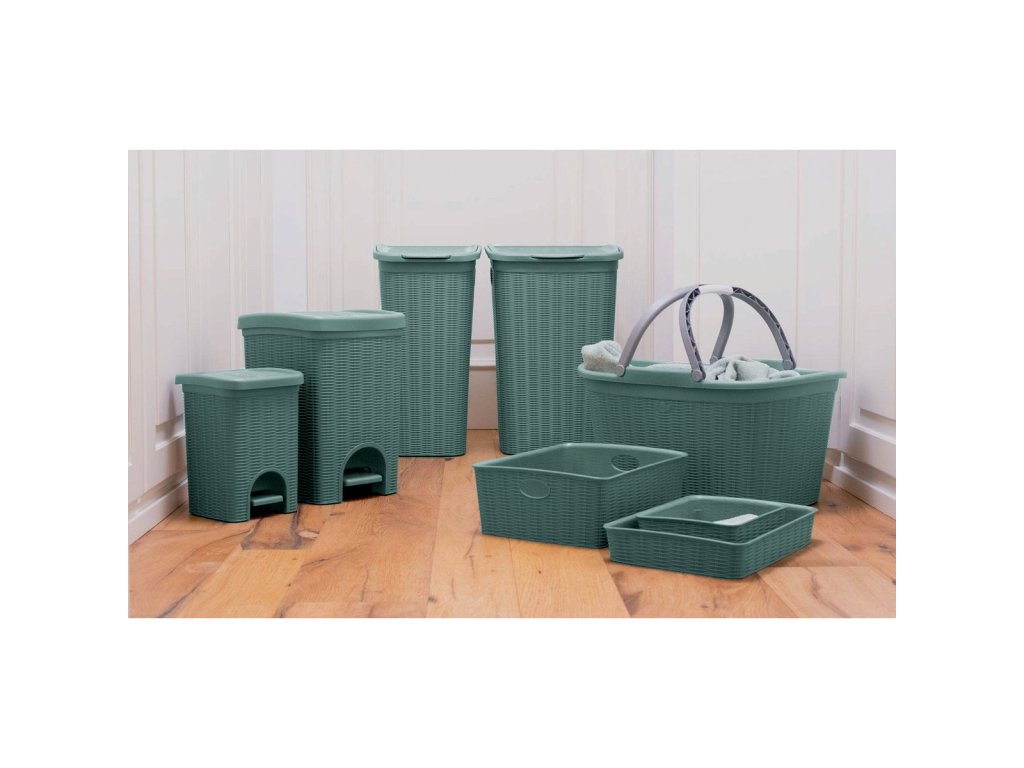 Obdélníkový košík s rozměry 25 × 19,5 × 10 cm je vyroben z 87% recyklovaného plastu a je 100% recyklovatelný. Jeho povrch imituje přírodní ratan, což dodává elegantní vzhled vhodný do různých prostor.