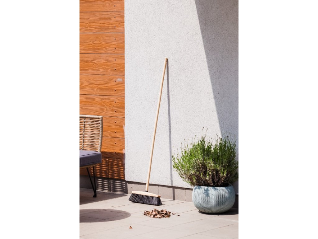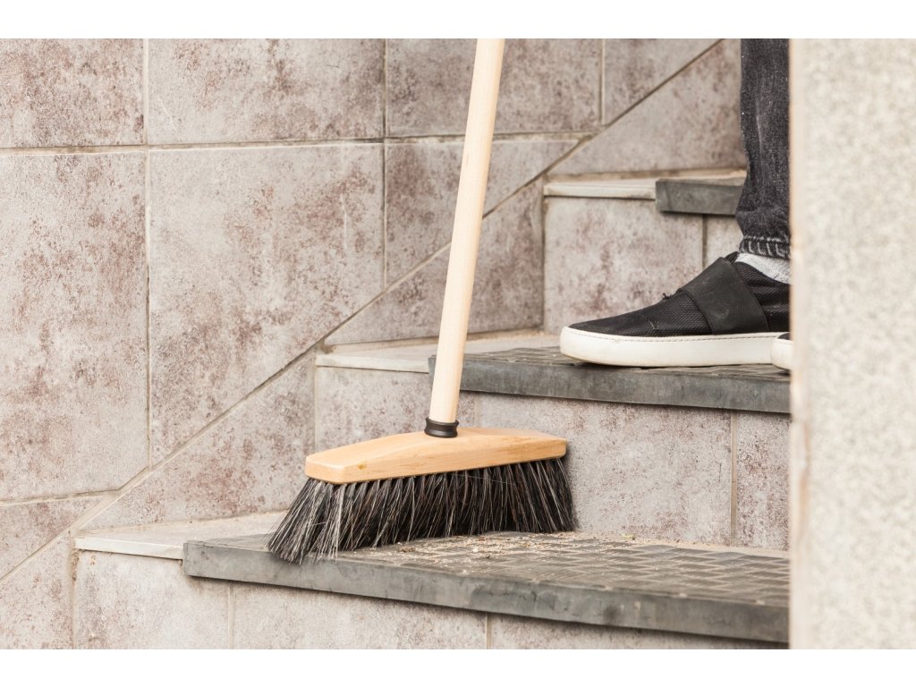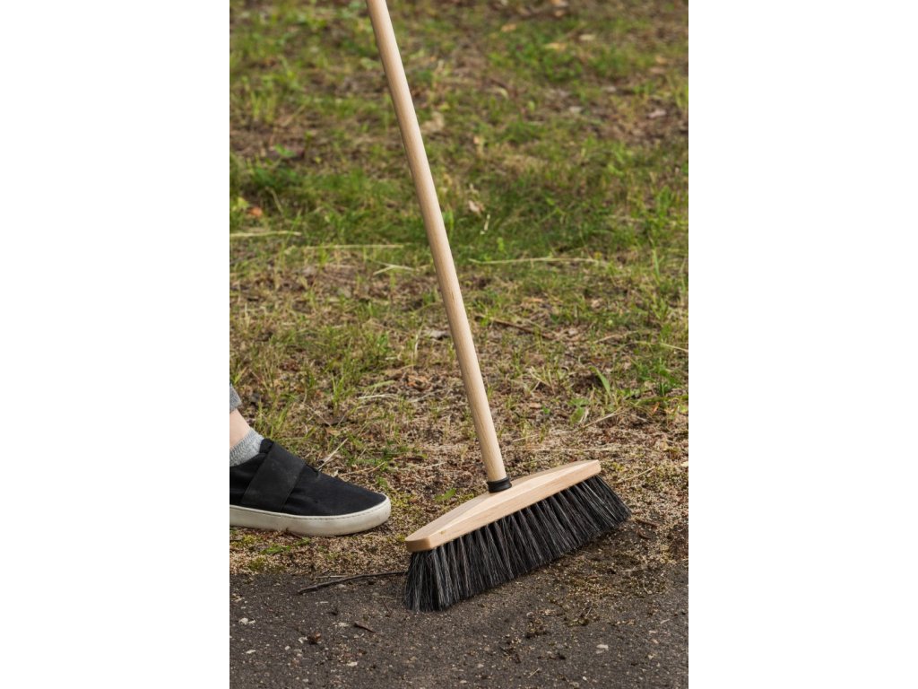 Koště s přírodní štětinou 30 cm – spolehlivý pomocník pro rychlý a důkladný úklid kolem domu, v garáži i na příjezdové cestě. Husté svazky přírodních vláken s 30 % koňských žíní účinně nabírají prach, písek i drobné kamínky a přitom jsou šetrné k povrchům.