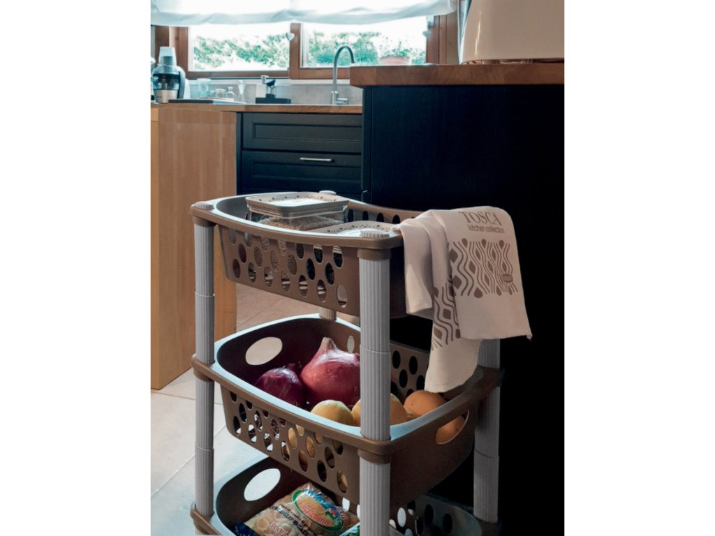 Kuchyňský vozík Stefanplast Otello s třemi policemi je praktickým pomocníkem do kuchyně, koupelny i kanceláře. Díky kompaktním rozměrům a lehké konstrukci je snadno přemístitelný pomocí otočných koleček. Vyroben je z odolného plastu, který se snadno čistí. Nabízí tři úložné úrovně ideální pro potraviny, kuchyňské náčiní, hygienické potřeby nebo kancelářské vybavení. Skvělé řešení pro udržení pořádku v menších prostorách.