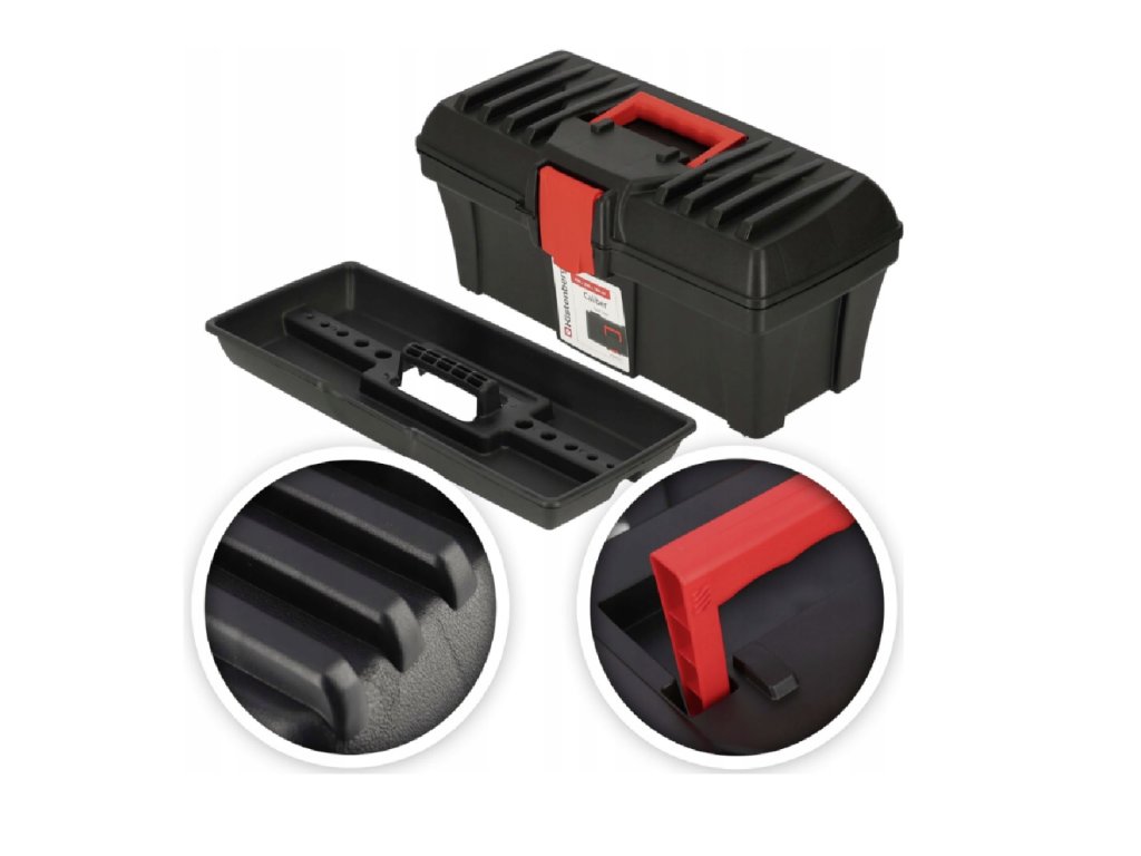 *Velikost: 15 * Červené plastové zavírání * Červená plastová rukojeť * Černé víko * Vnitřní zásobník pro malé nástroje * Materiál: PP * Nosnost 8,5 kg