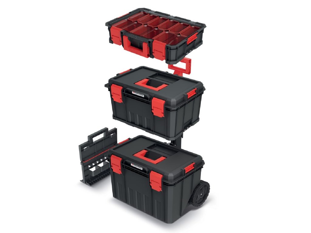 rozměr 530x355x825mm, PROFI kvalita pro denní používání, základní kufr na kolečkách s madlem, přídavný kufr s přepážkami, víceúčelový box s organizerem, samostatný nosič nářadí, stohovatelné a samostatně použitelné,