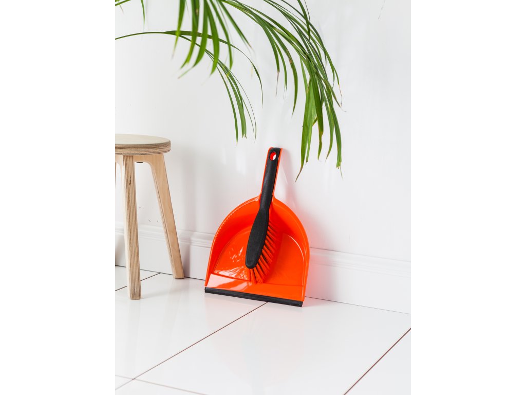 Tip pro nejlepší výsledek: při nabírání nečistot jemně přitlačte gumovou lištu k podlaze a veďte smetáček krátkými tahy směrem k lopatce. Po úklidu set jednoduše zacvakněte a uložte – budete mít vždy pořádek po ruce.