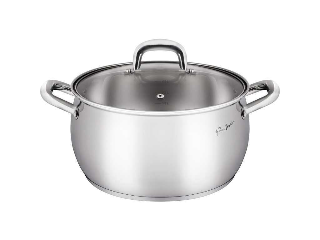 Kastrol s poklicí LAMART LT1161 Vyrobeno z prvotřídní nerezavějící oceli Designové nerezové nádobí vyrobeno z prvotřídní nerezavějící oceli, opatřeno silným sendvičovým dnem a velmi elegantními úchyty pro větší bezpečnost, funkčnost a pohodlí Poklice z odolného skla a otvorem pro páru pro dokona...