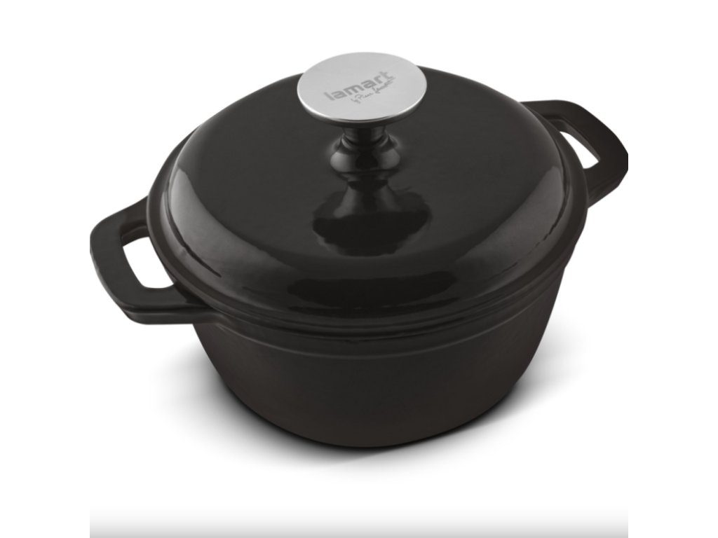 Hrnec s poklicí kulatý LAMART LT1207 Smaltované litinové nádobí – vysoká kvalita, stálý, tvrdý neměnný materiál, barvitelný Vnitřní a vnější smaltovaná vrstva odolává odření a praskání dolnost vůči vysokým teplotám do 280 C Kvalitní litina s nepřilnavou vrstvou smaltu spojuje nízkou adhezi s vy...