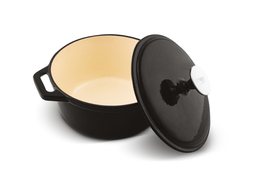 Hrnec s poklicí kulatý LAMART LT1208 Smaltované litinové nádobí – vysoká kvalita, stálý, tvrdý neměnný materiál, barvitelný Vnitřní a vnější smaltovaná vrstva odolává odření a praskání dolnost vůči vysokým teplotám do 280 C Kvalitní litina s nepřilnavou vrstvou smaltu spojuje nízkou adhezi s vy...