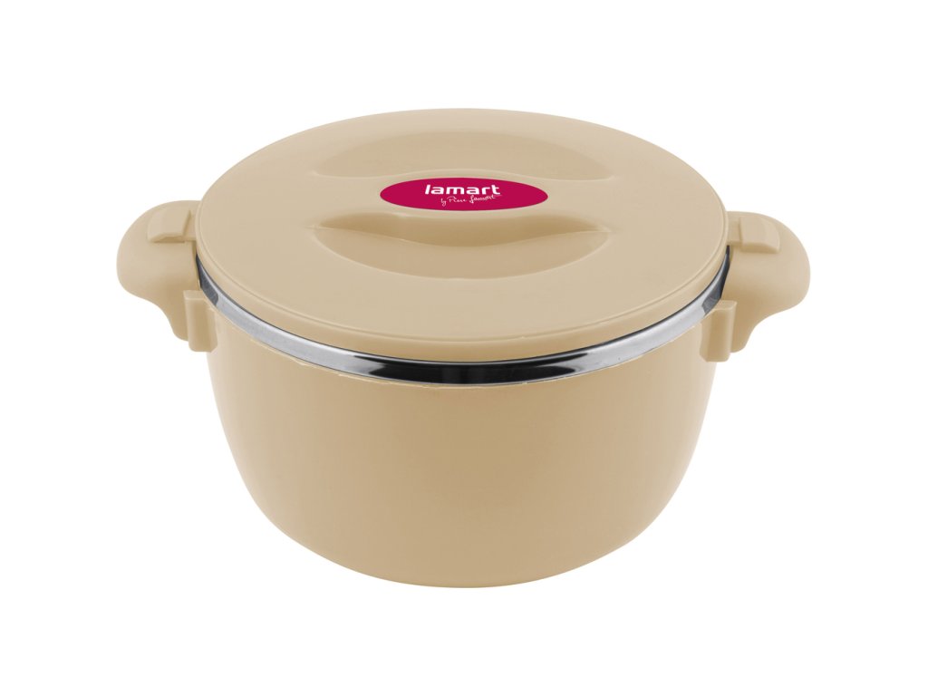 Termohrnec LAMART LT6037 Termohrnec je praktický pomocník pro uchovávání a přenášení horkých i studených pokrmů Vyroben z kvalitního odolného plastu a vnitřní nerezové vložky, izolační výplň mezi stěnami je z PUR pěny pro zachování požadovaných teplot potravin Víčko termonádoby se uzamyká v část...