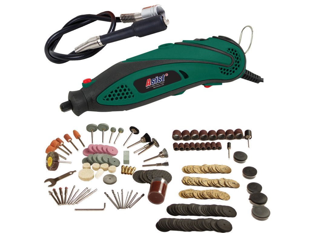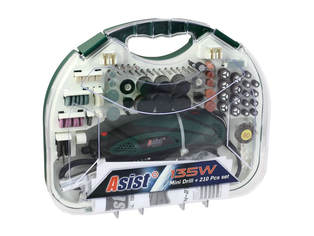 Skvěle propracovaná přímá bruska ASIST AE3C13DN-210-1 představuje univerzální nástroj pro domácí kutily, drobné řemeslníky i na hobby použití. Jedná se o mini brusku s výkonem 135 Wattů a plynulou regulací otáček. Otáčky je možné regulovat v rozmezí 8000 – 33000 otáček za minutu. Je vhodná pro opracování jak měkkých, tak i tvrdých materiálů. Skvěle se drží a snadno i rychle v ní vyměníte pracovní nástavce. Jistě oceníte i bohaté příslušenství, do kterého je zařazena ohebná hřídel. Kompletně se dodává v průsvitném kufříku, kde je veškeré příslušenství přehledně uspořádané.