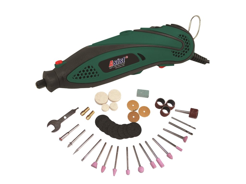 Skvěle propracovaná přímá bruska ASIST AE3C13DN-BMC-3 představuje univerzální nástroj pro domácí kutily, drobné řemeslníky i na hobby použití. Jedná se o mini brusku s výkonem 135 Wattů a plynulou regulací otáček. Otáčky je možné regulovat v rozmezí 8000 – 33000 otáček za minutu. Je vhodná pro opracování jak měkkých, tak i tvrdých materiálů. Skvěle se drží a snadno i rychle v ní vyměníte pracovní nástavce. Navíc k ní obdržíte 40 kusů příslušenství. Vše je pak úhledně zabaleno v plastovém kufříku.